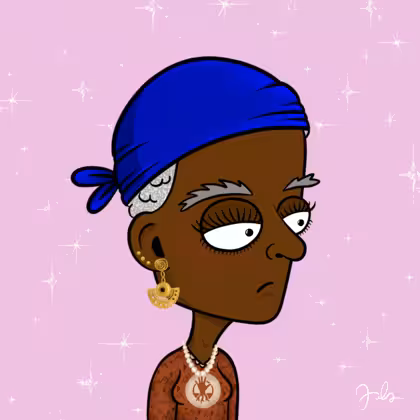 Collection Depressed Citizens Artist Juls Description ART. No team, no project, no future. Depressed Citizens is an urban & existential Art expression on Ordinals. In a parallel universe, "THEI" control us. DC unites against toxic society, encouraging critical thinking. 100% hand made collection that took Juls more than 6 months of daily work. Name Citizen#2707 Origin African descendant Gender Woman Necklace Pearl necklace Hat Deep blue bandana Mustache Beard No beard Glasses No Glasses Earrings Ball earrings trio Hair Style Short tight curls Clothes Stop deforestation women long-sleeve shirt Tattoo No Tattoo Star Background With stars