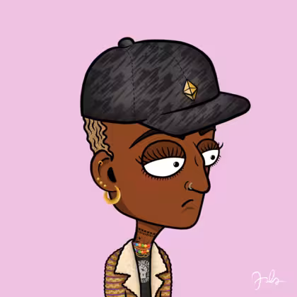 Collection Depressed Citizens Artist Juls Description ART. No team, no project, no future. Depressed Citizens is an urban & existential Art expression on Ordinals. In a parallel universe, "THEI" control us. DC unites against toxic society, encouraging critical thinking. 100% hand made collection that took Juls more than 6 months of daily work. Name Citizen#2461 Origin African descendant Gender Woman Necklace Colorful layered necklace Hat Bad cap Mustache Beard No beard Glasses No Glasses Earrings Rook hoop Hair Style Short curly with gel Clothes BLM women shirt Tattoo Rose tattoo Star Background Without stars