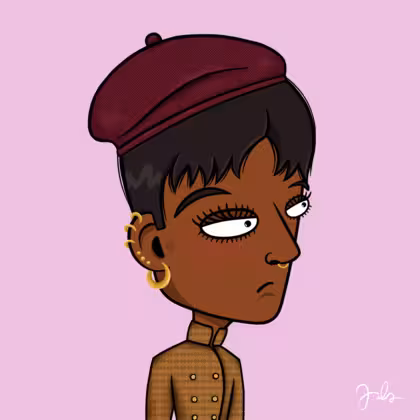 Collection Depressed Citizens Artist Juls Description ART. No team, no project, no future. Depressed Citizens is an urban & existential Art expression on Ordinals. In a parallel universe, "THEI" control us. DC unites against toxic society, encouraging critical thinking. 100% hand made collection that took Juls more than 6 months of daily work. Name Citizen#1088 Origin African descendant Gender Woman Necklace No Necklace Hat Burgundy beret Mustache Beard No beard Glasses No Glasses Earrings Helix ring trio Hair Style Short pixie Clothes Not visible T-shirt Tattoo Anti maxis tattoo Star Background Without stars