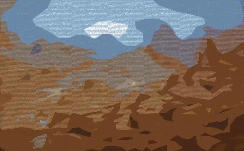 Each piece begins with original landscape photography, transformed through GAN-based machine learning into abstract terrains, then manually refined into simplified digital compositions. The final works are inscribed onto satoshis shared with cursed ordinals deemed valueless—cursed, floored, and rejected.